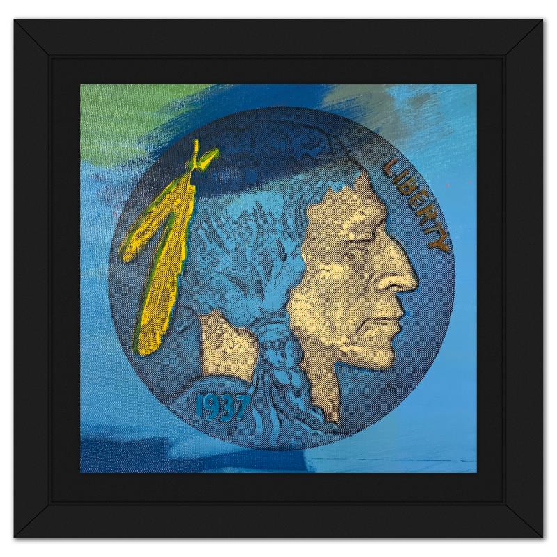 Steve Kaufman (1960-2010), "1937 Native American Coin" Framed Hand Embellished Limited Edition Silscreen, Numbered 9/50 Inverso and Hand Signed with Letter of Authenticity