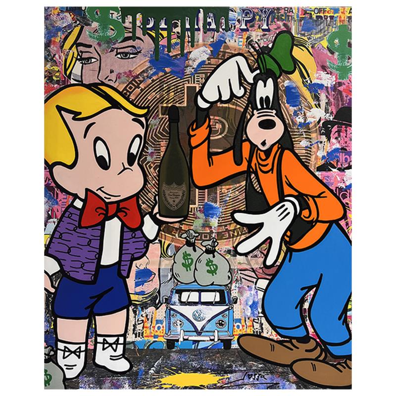 "A Little Lost" is a unique mixed media acrylic on gallery wrapped canvas by Jozza. Hand Signed by the artist and titled in verso, the piece comes with a letter of authenticity. Measures approximately 30" x 24" (image).