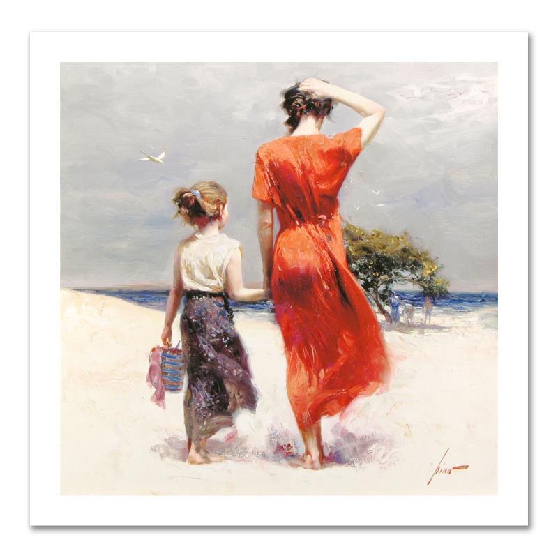 "Afternoon Stroll" is a limited edition giclee on canvas by Pino (1939-2010), numbered and hand signed by the artist. Includes Certificate of Authenticity. Measures approximately 12" x 12".