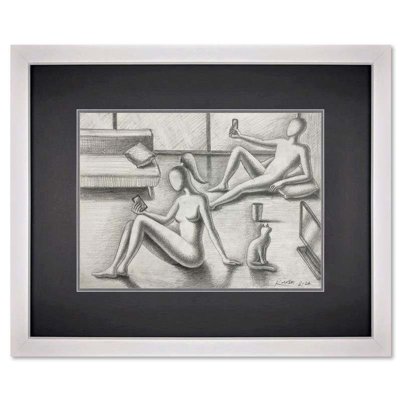 "Always Together" is an original drawing on paper by Mark Kostabi, hand signed by the artist. This piece comes custom framed. Includes Certificate of Authenticity. Measures approx. 15" x 18" (frame), 9" x 12" (image). This item requires special handling and may have a longer than usual turnaround.
