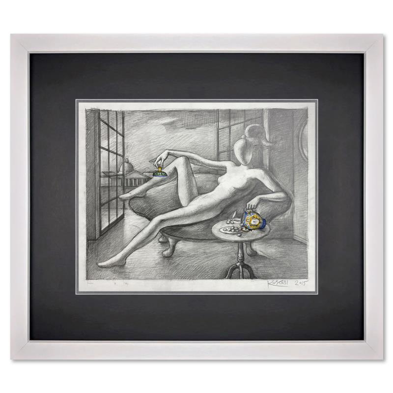 "An Abundance of Peace" is an original mixed media drawing on paper by Mark Kostabi, hand signed by the artist. This piece comes custom framed. Includes Certificate of Authenticity. Measures approx. 17.5" x 19" (frame), 11.5" x 13" (image). This item requires special handling and may have a longer than usual turnaround.