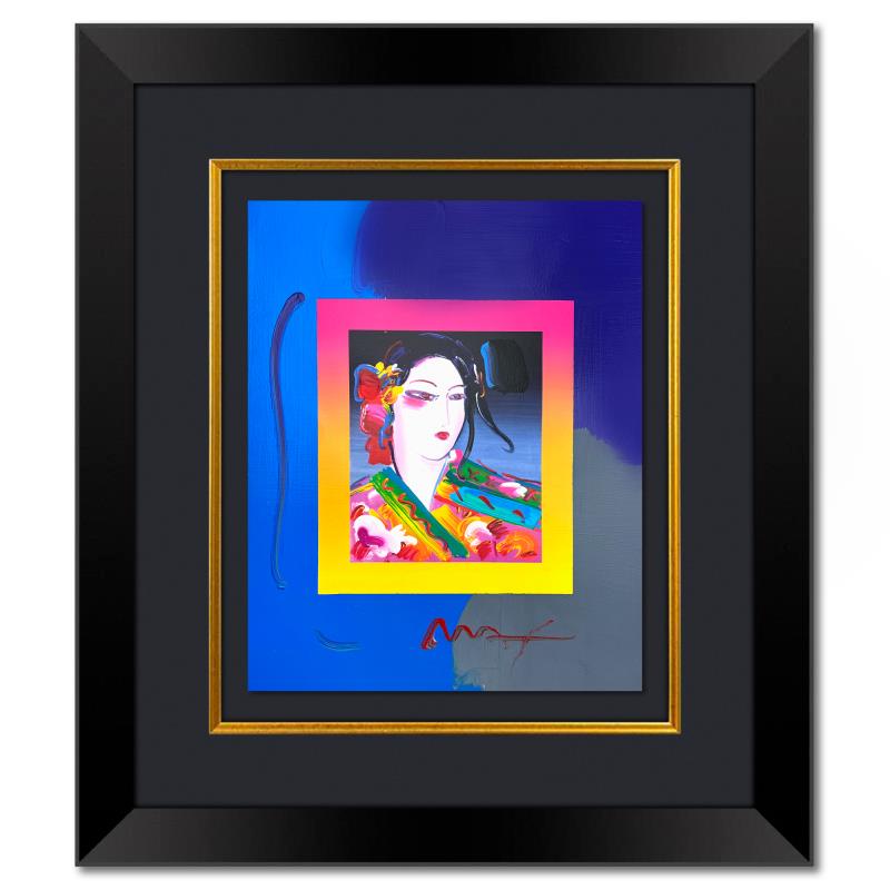 "Asia on Blends" is a one-of-a-kind mixed media on paper, hand signed by Peter Max. The piece comes custom framed with a backside cutout to display Peter Max Studio registration number 203061 certifying authenticity. Measures approximately 28" x 24" (frame), 19" x 15" (image). This item requires special handling and may have a longer than usual turnaround.