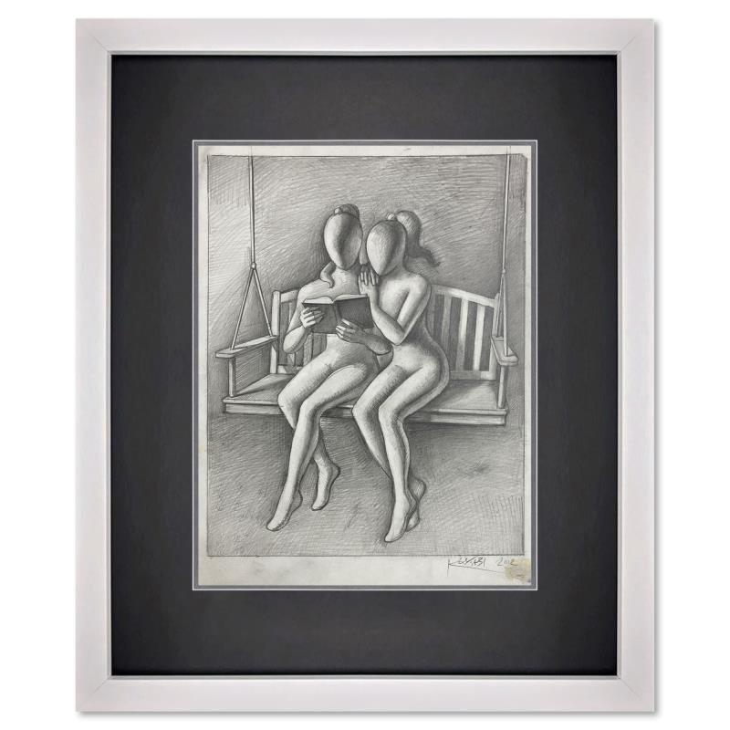 "Besties" is an original drawing on paper by Mark Kostabi, hand signed by the artist. This piece comes custom framed. Includes Certificate of Authenticity. Measures approx. 20" x 16" (frame), 14" x 10" (image). This item requires special handling and may have a longer than usual turnaround.
