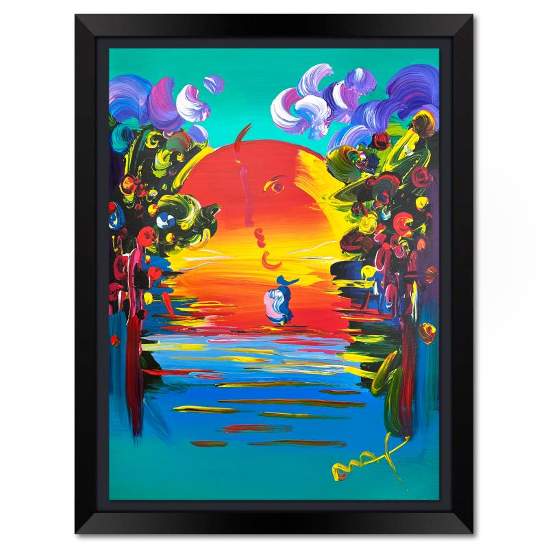 "Better World" is a one-of-a-kind mixed media on paper, hand signed by Peter Max. The piece comes custom framed with a backside cutout to display Peter Max Studio registration number 195471 certifying authenticity. Measures approximately 30" x 24" (frame), 24" x 18" (image). This item requires special handling and may have a longer than usual turnaround.