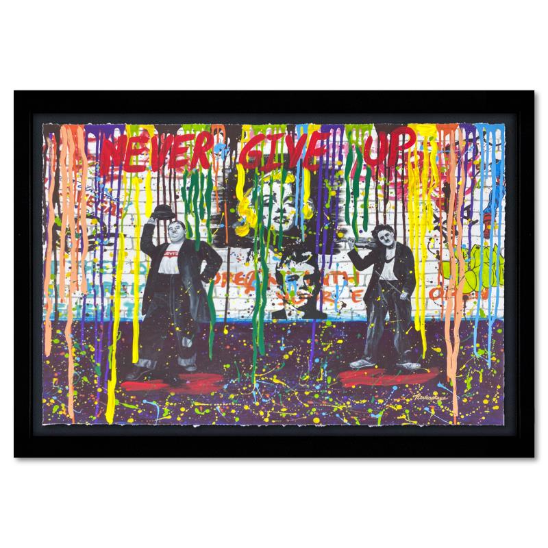"Chaplin and Hardy" is a one-of-a-kind mixed media on deckle edge paper by Nastya Rovenskaya, Hand signed by the artist. This piece comes floating in a custom frame. Includes Letter of Authenticity. Measures approximately 28" x 40" (framed), 24" x 36" (image). This item requires special handling and may have a longer than usual turnaround.