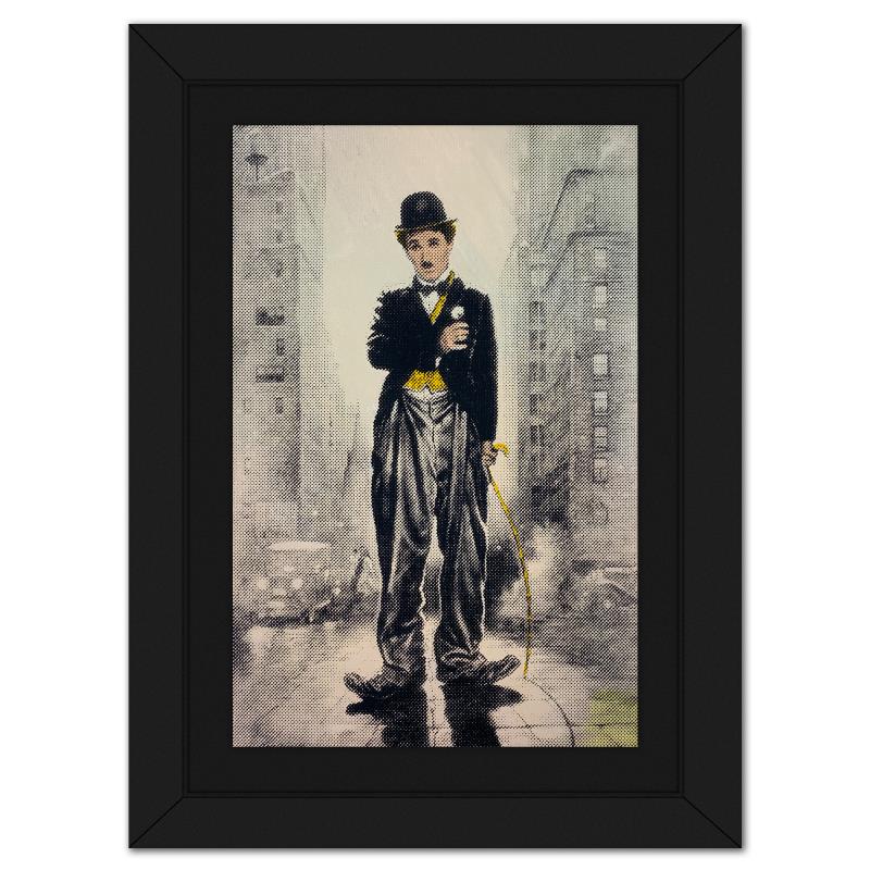 "Charlie Chaplin I" is a hand embellished limited edition silkscreen on canvas by Andy Warhol protege, Steve Kaufman (1960-2010), numbered 31/50 inverso and hand signed by the artist. This piece comes custom framed. Includes Letter of Authenticity. Measures approx. 16.5" x 12" (frame), 13.5" x 9" (image). This item requires special handling and may have a longer than usual turnaround.