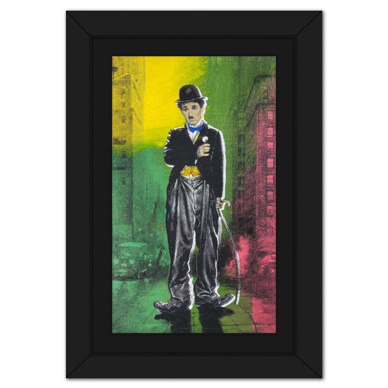 Steve Kaufman (1960-2010), "Charlie Chaplin II" Framed Hand Embellished Limited Edition Silscreen, Numbered 28/100 Inverso and Hand Signed with Letter of Authenticity
