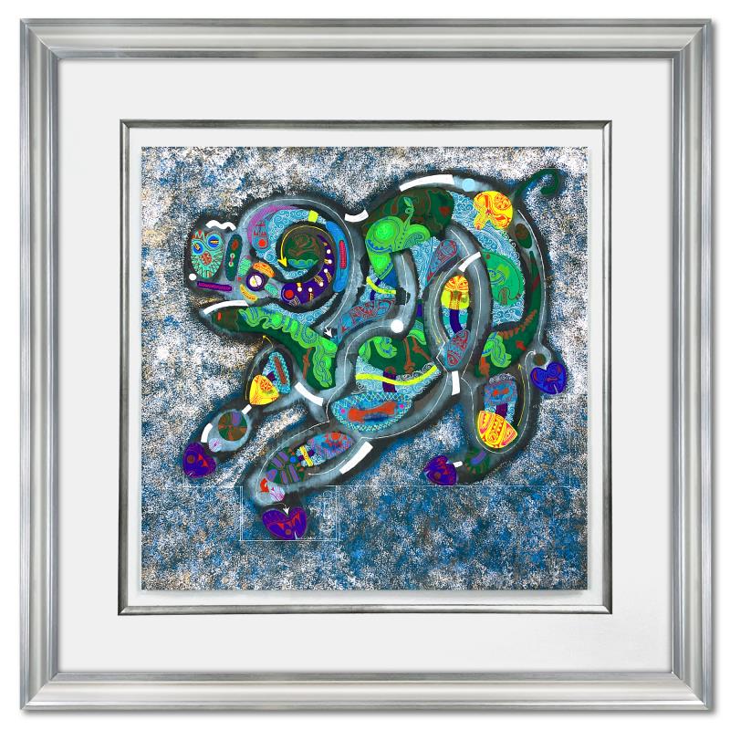 "Chinese Zodiac - Water Pig" is an original mixed media painting on paper by Lu Hong, hand signed by the artist. This piece comes custom framed. Includes Letter of Authenticity. Measures approx. 31" x 31.5" (frame), 20" x 20" (image). This item requires special handling and may have a longer than usual turnaround.