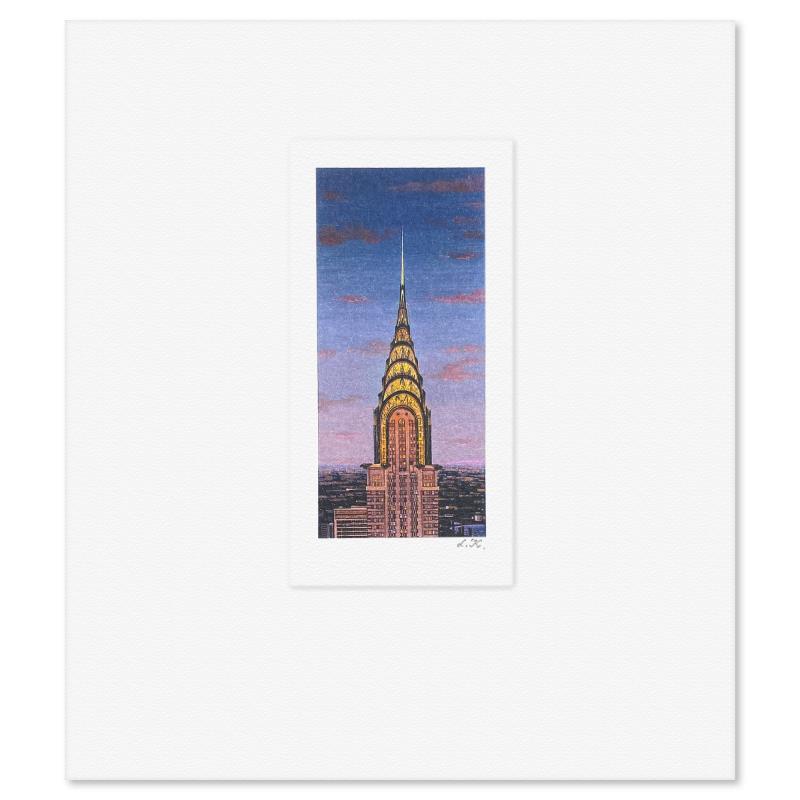 "Chrysler Building" is a limited edition lithograph on paper by Liudmila Kondakova, hand signed by the artist. Includes Letter of Authenticity. Measures approx. 7" x 6" (border), 3.5" x 1.5" (image).