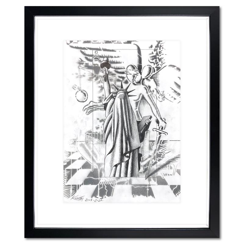 "Conflicting Ideologies" is an original drawing on paper by Mark Kostabi, hand signed by the artist. This piece is dated 2004-2022, which refers to the start and completion dates for the piece. This piece comes custom framed. Includes Certificate of Authenticity. Measures approx. 15" x 18" (frame), 9.5" x 13" (image).