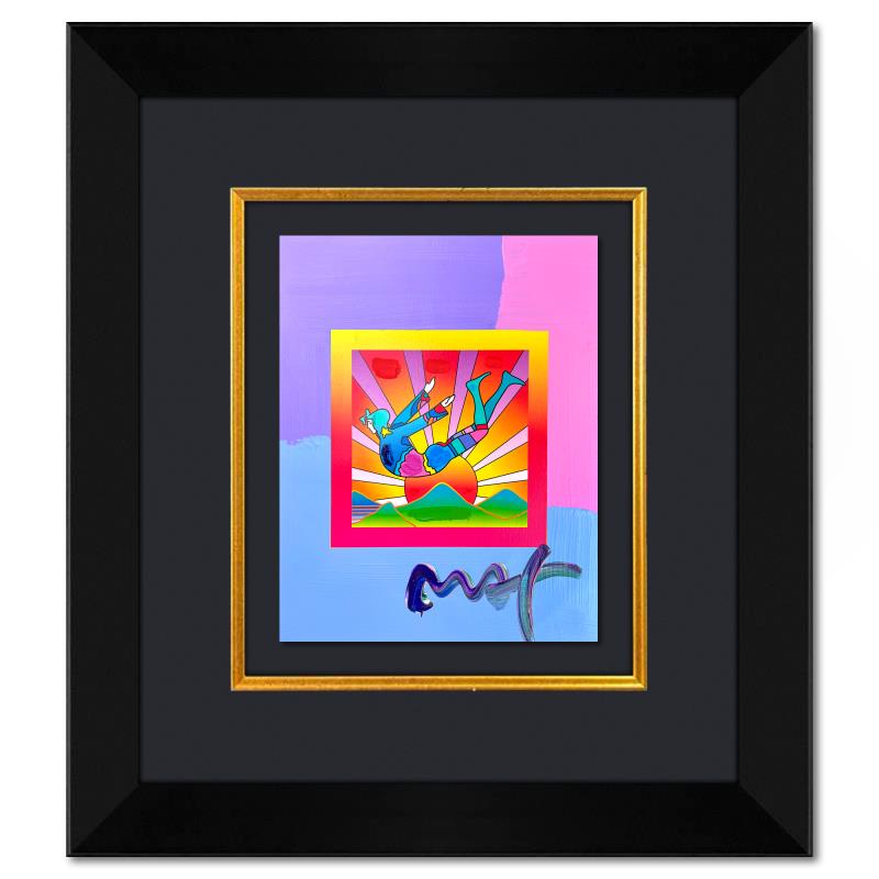 "Cosmic Flyer" is a hand signed one-of-a-kind acrylic mixed media on paper by Peter Max. The piece comes custom framed with a backside cutout to display Peter Max Studio registration number 308000 certifying authenticity. Measures approximately 26" x 23" (frame), 13" x 10" (image). This item requires special handling and may have a longer than usual turnaround.