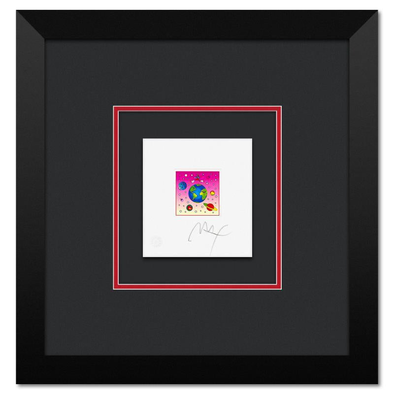 "Cosmic Runner with Planets" is a limited edition lithograph on paper by Peter Max, numbered and hand signed by the artist. This piece comes framed. Includes Certificate of Authenticity from Peter Max Studios. Measures approx. 15" x 14.5" (frame), 5" x 4.5" (image).