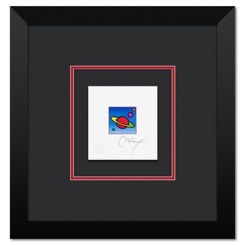 "Cosmic Saturn II" is a limited edition lithograph on paper by Peter Max, numbered and hand signed by the artist. This piece comes framed. Includes Certificate of Authenticity from Peter Max Studios. Measures approx. 15" x 14.5" (frame), 5" x 4.5" (image).