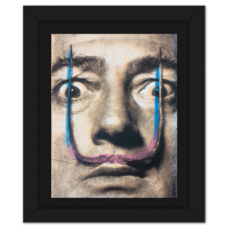 "Dali's Mustache" is a hand embellished limited edition silkscreen on canvas by Andy Warhol protege, Steve Kaufman (1960-2010), numbered RR 2/100 inverso and hand signed by the artist. This piece comes custom framed. Includes Letter of Authenticity. Measures approx. 18.5" x 14.5" (frame), 15.5" x 11.5" (image). This item requires special handling and may have a longer than usual turnaround.