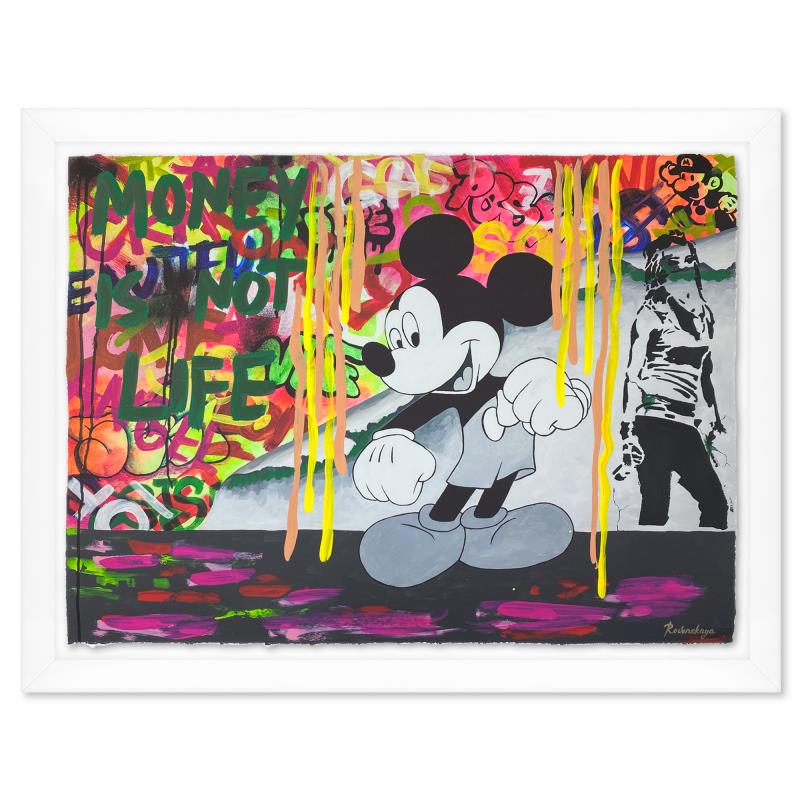 "Dancing in the City" is a one-of-a-kind mixed media on deckle edge paper by Nastya Rovenskaya, Hand signed by the artist. This piece comes floating in a custom frame. Includes Letter of Authenticity. Measures approximately 27" x 34" (framed), 23" x 30" (image). This item requires special handling and may have a longer than usual turnaround.