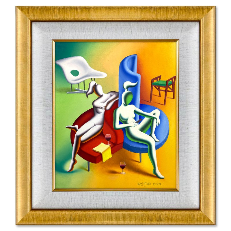 "Did You Text Sabrina" is an original oil painting on canvas by Mark Kostabi, hand signed by the artist. This piece comes custom framed. Includes Certificate of Authenticity. Measures approx. 33.5" x 29.5" (frame), 23.5" x 19.5" (image).