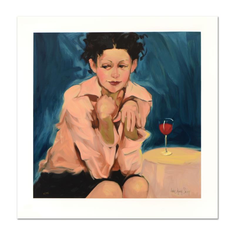 "Do Tell" is a limited edition serigraph on paper by Linda Kyser Smith, numbered and hand signed by the artist. Includes Certificate of Authenticity. Measures approx. 29" x 29" (border), 24" x 24" (image).