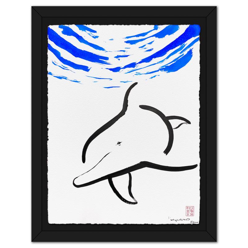 Wyland, "Dolphin" Framed Original Sumi Ink Painting, Hand Signed with Letter of Authenticity.
