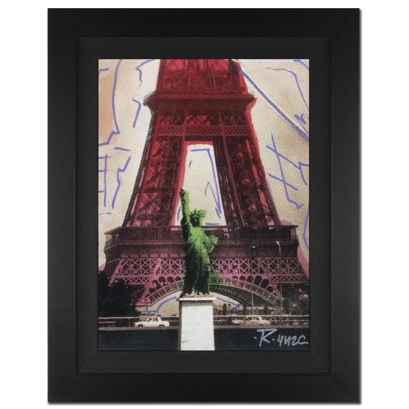 "Eiffel Tower" is a one-of-a-kind hand-pulled silkscreen and mixed media painting on canvas by Ringo (Daniel Funes) - protege of Andy Warhol's apprentice, Steve Kaufman! This piece is hand signed by the artist and Includes Certificate of Authenticity! Measures approx. 17" x 21" (with frame); 12" x 16" (image). This item requires special handling and may have a longer than usual turnaround.