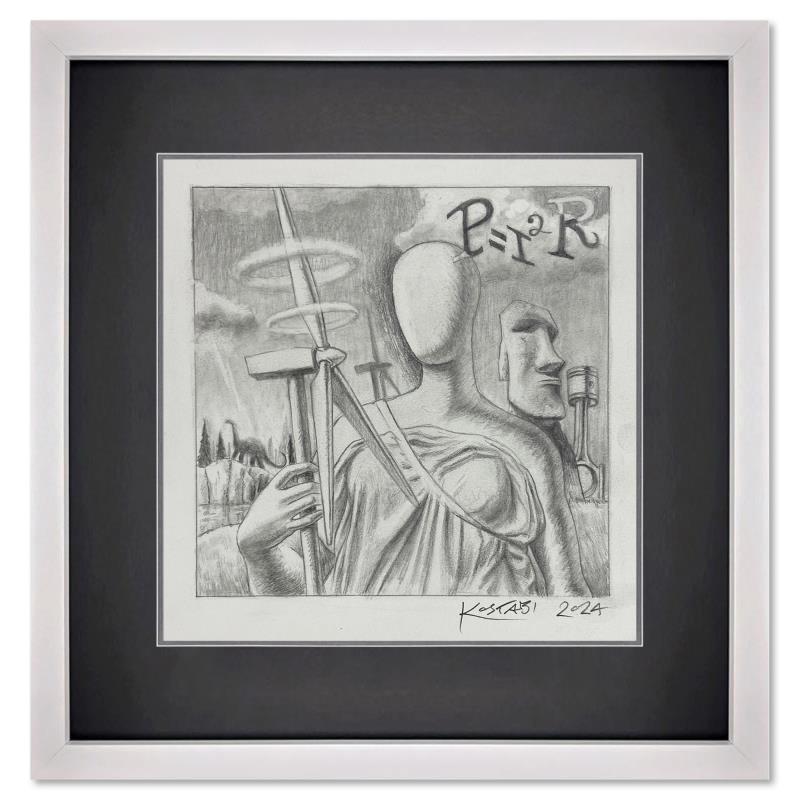 "Energy Continuum" is an original drawing on paper by Mark Kostabi, hand signed by the artist. This piece comes custom framed. Includes Certificate of Authenticity. Measures approx. 13" x 12.5" (frame), 7" x 6.5" (image). This item requires special handling and may have a longer than usual turnaround.