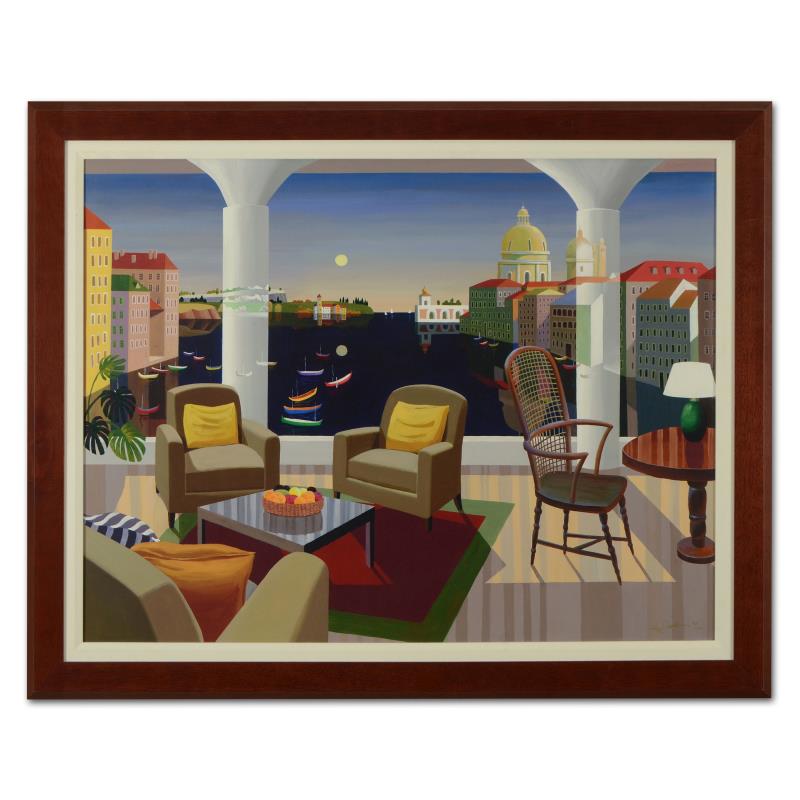 "Equinox" is a limited edition giclee on canvas by Datian, numbered 30/150 and hand signed by the artist. This piece comes framed. Includes Letter of Authenticity. Measures approx. 46.5" x 37" (frame), 39.5" x 29.5" (image). This piece has minor wear on the corners and edges of the frame.