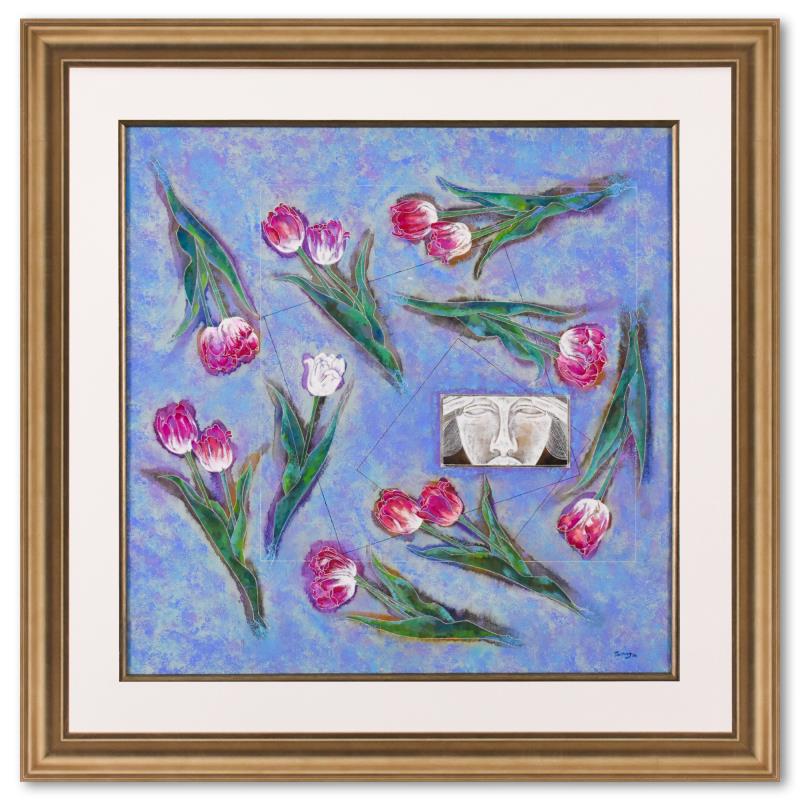 "Esoteric Dream III (1996)" is an original mixed media painting on paper by Lu Hong, hand signed by the artist. This piece comes custom framed. Includes Letter of Authenticity. Measures approx. 36" x 36" (frame), 26" x 26" (image).