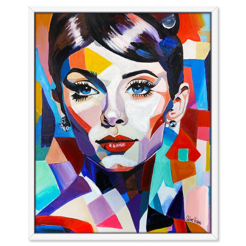 "Eternal Glamour" is a one-of-a-kind mixed media overpaint on canvas by Chloe Victoria, hand signed by the artist. This piece comes custom framed. Includes Letter of Authenticity. Measures approx. 23" x 28" (frame) 20" x 25" (image). This item requires special handling and may have a longer than usual turnaround.