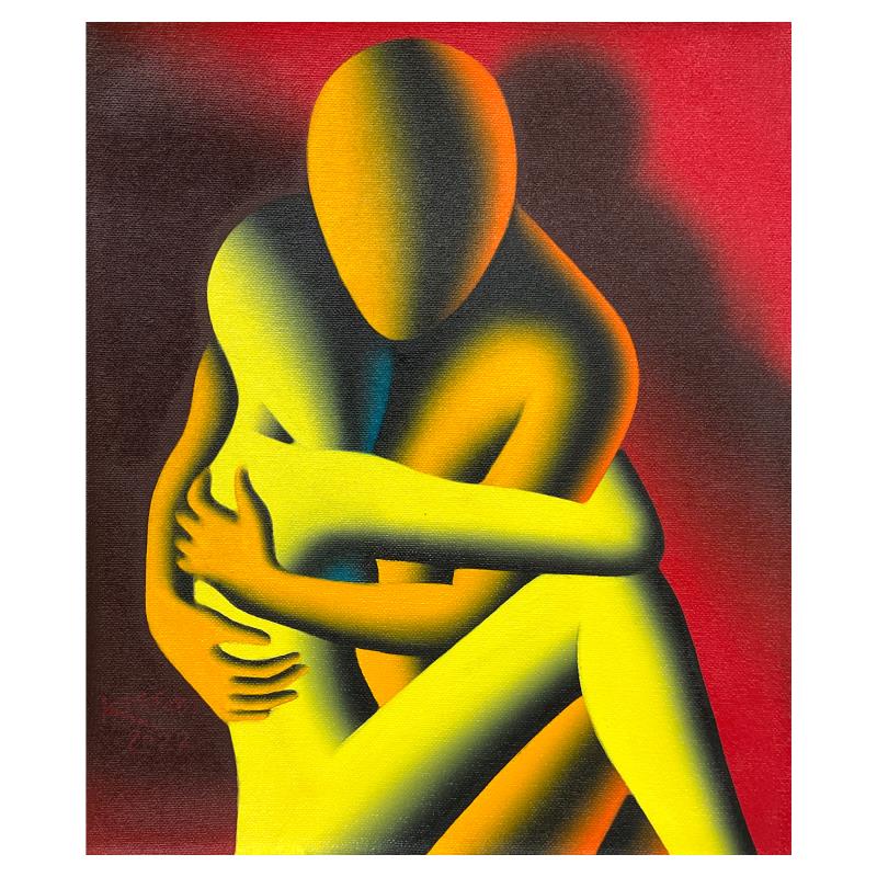 "Even Closer" is an original oil painting on canvas by Mark Kostabi, hand signed by the artist. Includes Certificate of Authenticity. Measures approx. 12" x 10" (image).