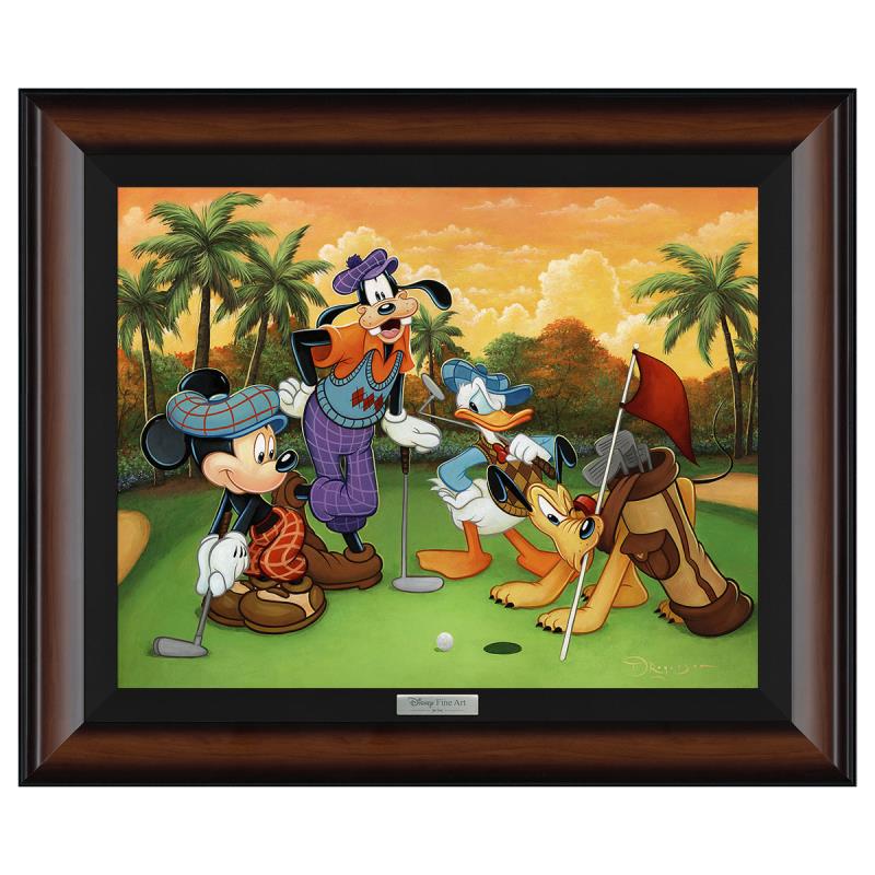 "Fabulous Foursome" is a framed limited edition giclee on canvas by Tim Rogerson. Part of the Disney Fine Art Silver Series, and featuring Mickey and Friends imagery, this piece comes framed and ready to hang. It is accompanied by a Certificate of Authenticity from Disney Fine Art. The edition is limited to just 500 pieces and measures approximately 21" x "25 (framed), 16" x 20" (image). This piece requires special handling and may have a longer than normal turnaround.