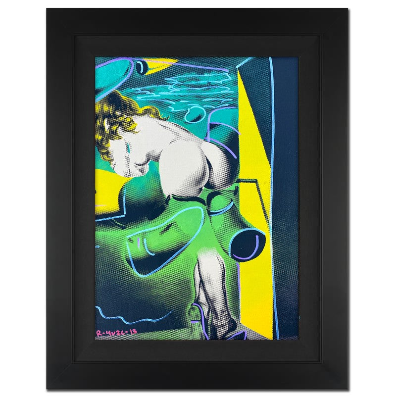 "Ringo" Daniel Funes, "Figure Out the Window" Framed One-of-a-Kind Mixed Media on Canvas, Hand Signed by the artist and Steve Kaufman (1960-2010) with Letter of Authenticity.