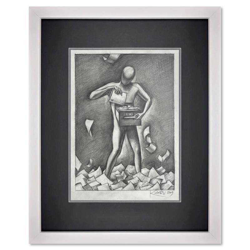 "File Me Under Q" is an original drawing on paper by Mark Kostabi, hand signed by the artist. This piece comes custom framed. Includes Certificate of Authenticity. Measures approx. 19.5" x 15.5" (frame), 13.5" x 9.5" (image). This item requires special handling and may have a longer than usual turnaround.
