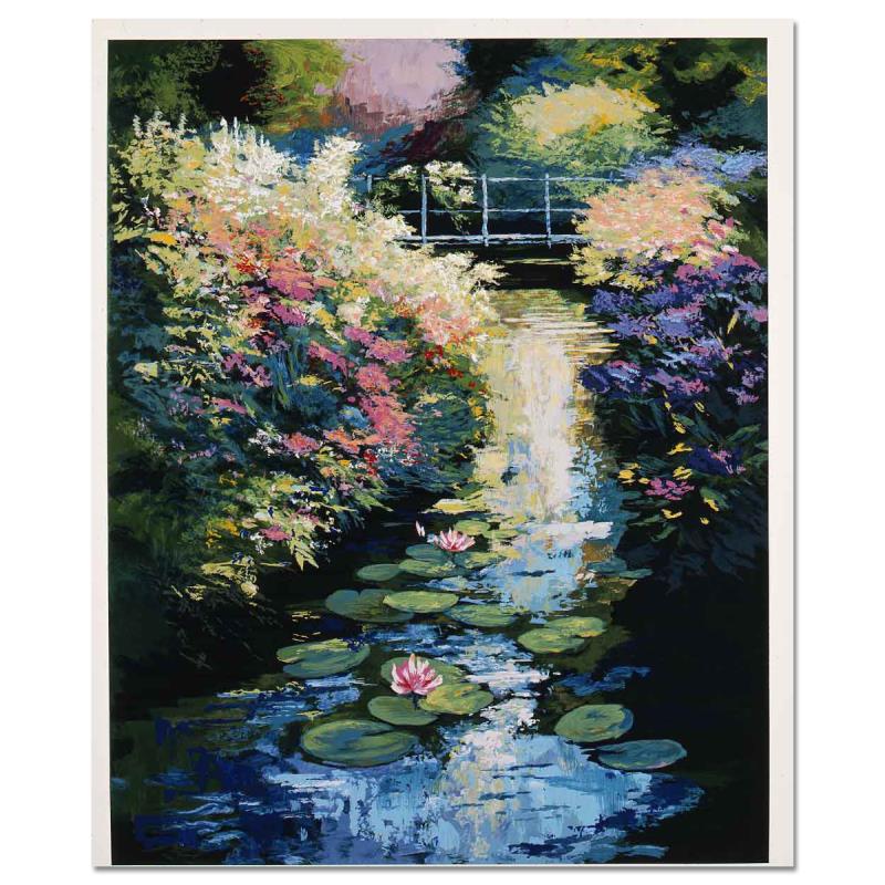 "Flowering Bank & Waterlilies" is a limited edition serigraph on paper by Mark King (1931-2014). Hand signed and numbered, this piece comes with a letter of authenticity and measures approximately 30" x 24" (image).