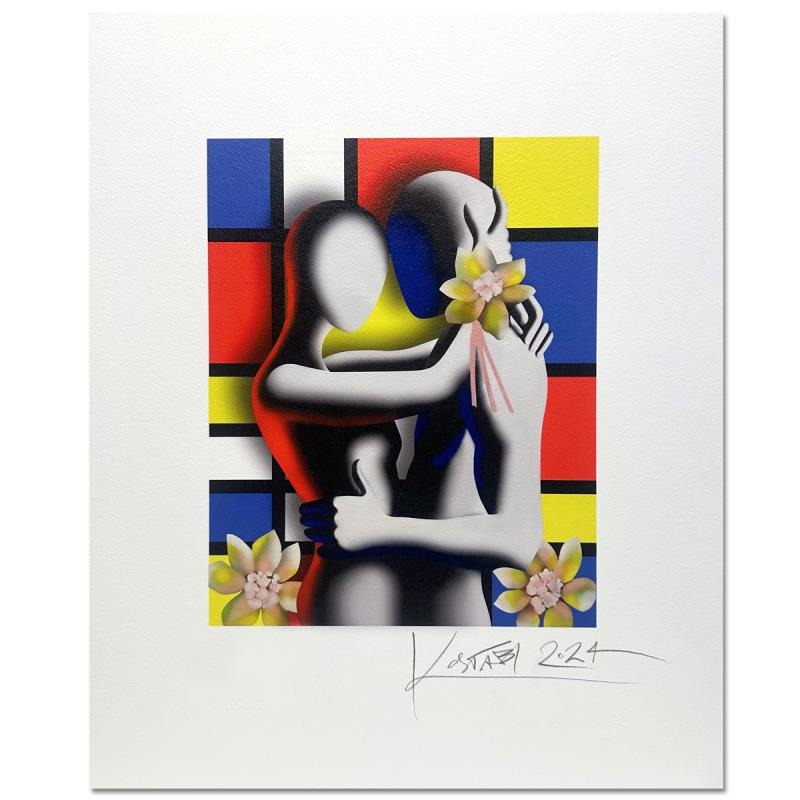 "Forever in Bloom", is a limited edition giclee on paper by Mark Kostabi. The piece is hand signed and numbered and comes with a certificate of authenticity. Measures approximately 21.5" x 17.5" (with border), 13" x 10.5" (image).