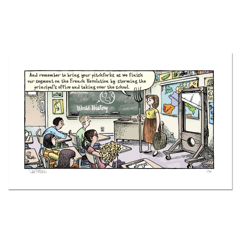 "French Rev" is a limited edition giclee on paper by Dan Piraro, creator of the critically acclaimed and award winning comic strip, Bizarro! This piece is numbered and hand signed by the artist and includes aletterof authenticity. Measures approximtely 8" x 15" (image).