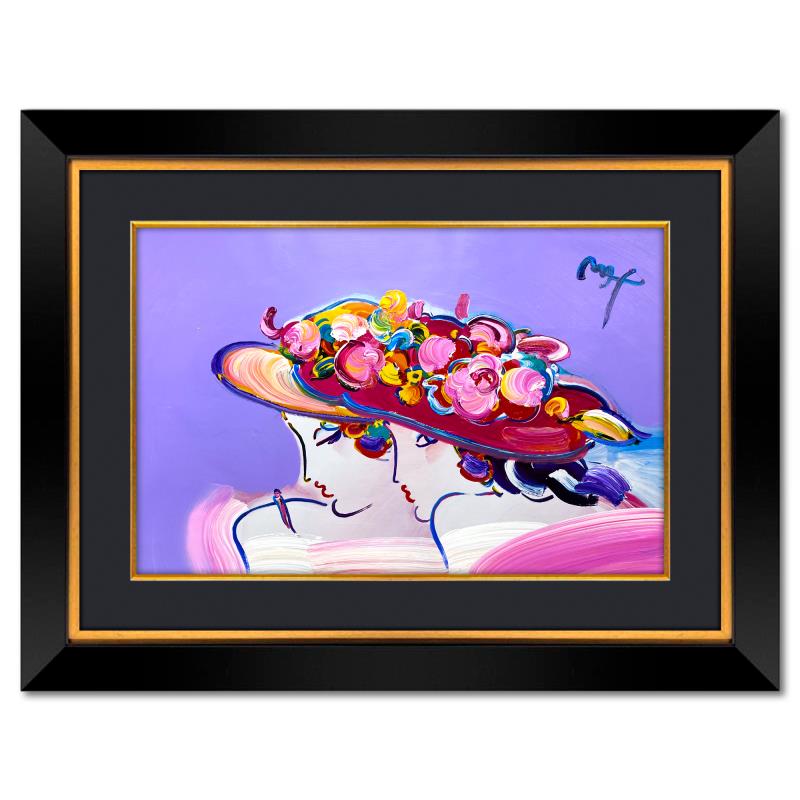 "Friends" is a one-of-a-kind mixed media on paper, hand signed by Peter Max. The piece comes custom framed with a backside cutout to display Peter Max Studio registration number 255933 certifying authenticity. Measures approximately 36" x 48" (frame), 24" x 36" (image). This item requires special handling and may have a longer than usual turnaround.