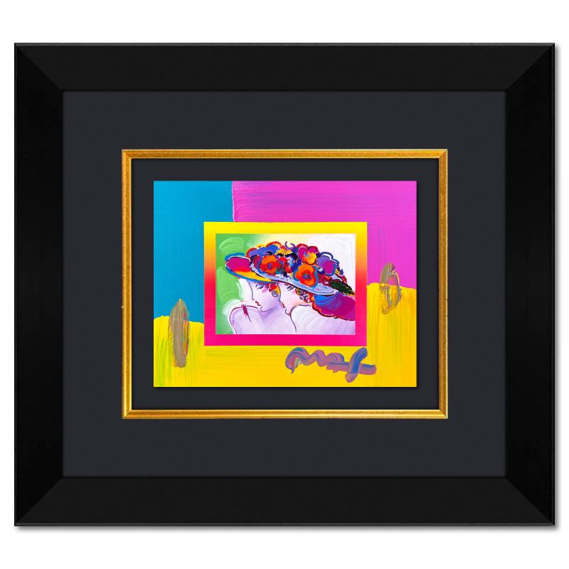 "Friends" is a hand signed one-of-a-kind acrylic mixed media on paper by Peter Max. The piece comes custom framed with a backside cutout to display Peter Max Studio registration number 324099 certifying authenticity. Measures approximately 23" x 26" (frame), 10" x 13" (image). This item requires special handling and may have a longer than usual turnaround.