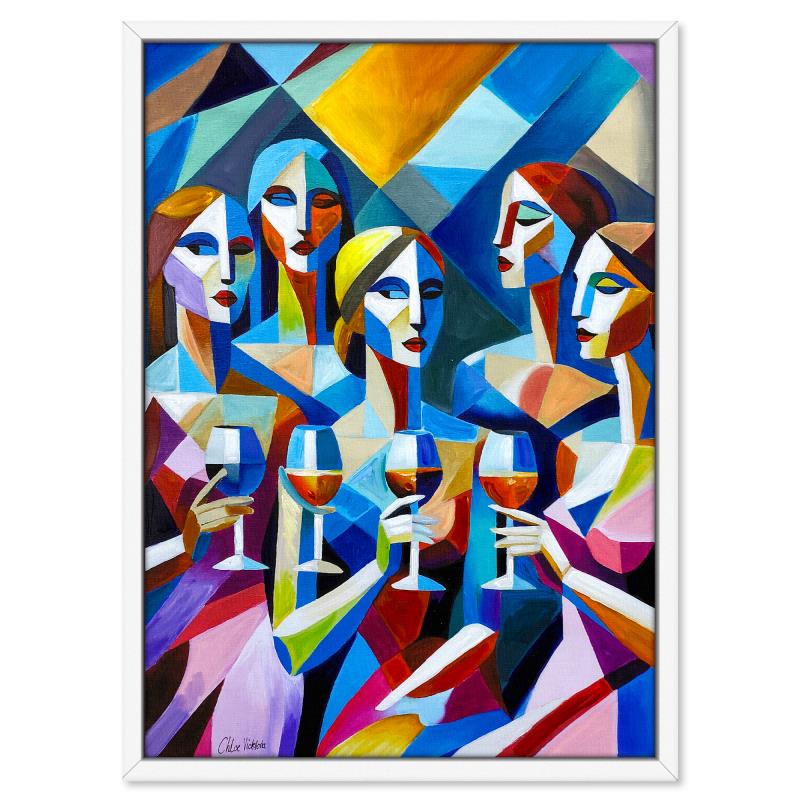 "Glass Reflection" is a one-of-a-kind mixed media overpaint on canvas by Chloe Victoria, hand signed by the artist. This piece comes custom framed. Includes Letter of Authenticity. Measures approx. 23" x 31" (frame) 20" x 28" (image). This item requires special handling and may have a longer than usual turnaround.