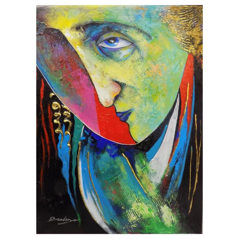 "Green Beauty""&" is an original acrylic mixed media painting on canvas by Ara Berberyan. The piece is hand signed and comes with a letter of authenticity. Measures approximately 24" x 18".