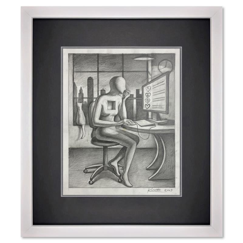 "Heart Shaped Box" is an original drawing on paper by Mark Kostabi, hand signed by the artist. This piece comes custom framed. Includes Certificate of Authenticity. Measures approx. 19.5" x 16" (frame), 13.5" x 10" (image). This item requires special handling and may have a longer than usual turnaround.