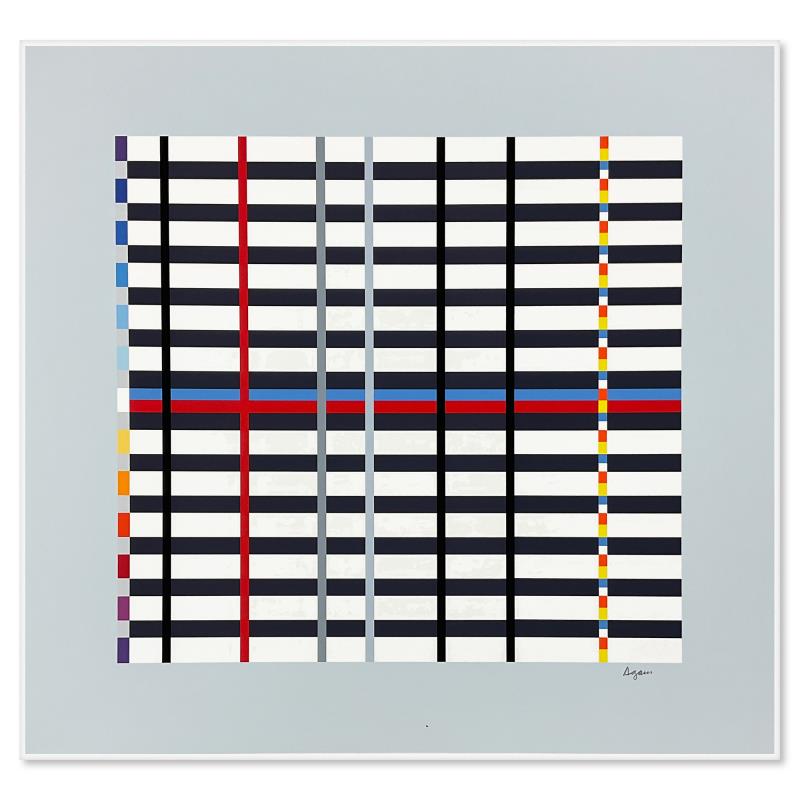 "Hommage du Mondrian (Light Blue)" is a limited edition serigraph on paper by Yaacov Agam, hand signed by the artist. Includes Letter of Authenticity. Measures approx. 26.5" x 28" (image).