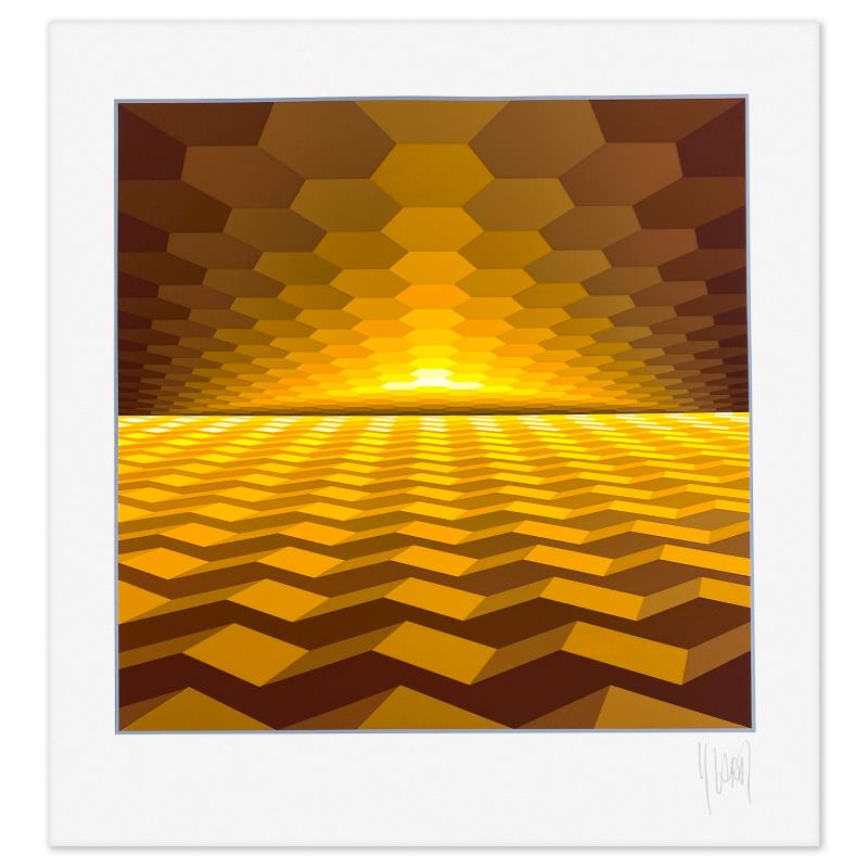 "Horizon I" is a limited edition serigraph on paper by Yvaral (1934-2002), numbered and hand signed with a Letter of Authenticity. Measures approx. 25" x 23.5" (border), 19" x 19" (image).