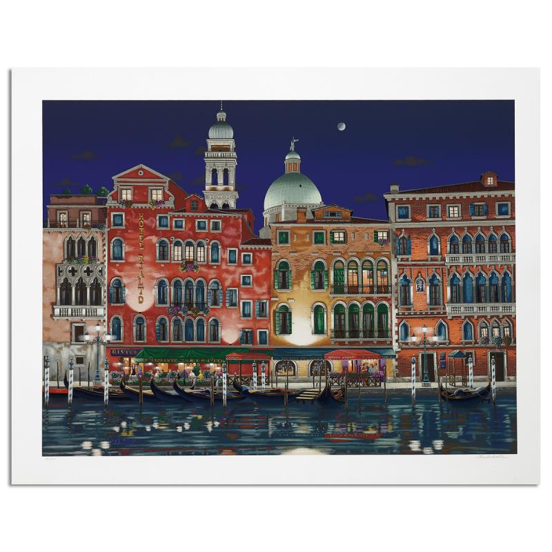 "Hotel Rialto" is a limited edition serigraph on paper by Liudmila Kondakova, hand signed by the artist. Includes Certificate of Authenticity from Chalk & Vermilion Fine Arts. Measures approx. 32" x 41" (border), 27" x 36" (image).