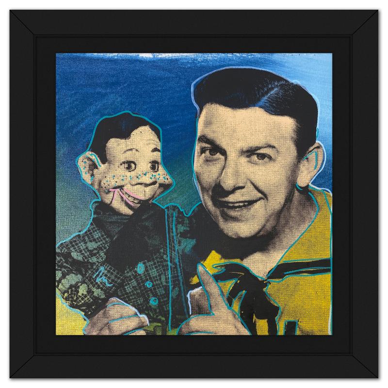 "Howdy Doody" is a hand embellished limited edition silkscreen on canvas by Andy Warhol protege, Steve Kaufman (1960-2010), numbered 2/50 inverso and hand signed by the artist. This piece comes custom framed. Includes Letter of Authenticity. Measures approx. 17" x 17" (frame), 14" x 14" (image). This item requires special handling and may have a longer than usual turnaround.