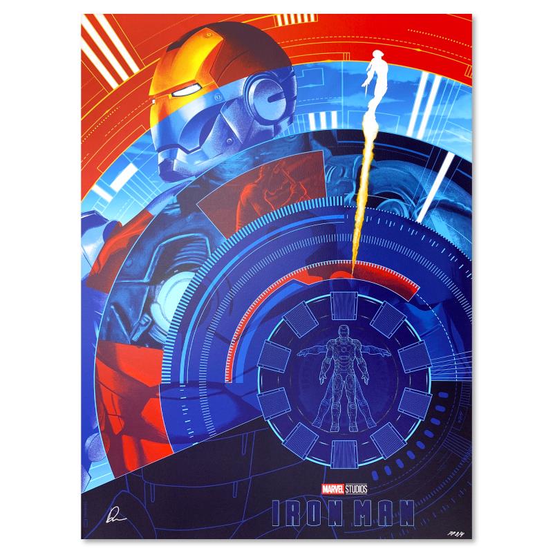 "Iron Man" is a limited edition giclee on paper from Marvel Comics and Doaly, PP numbered 3/4 and bearing the authorized signature of the artist. Includes Letter of Authenticity. Measures approx. 24" x 18" (image).