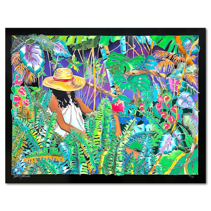 "Island Bouquet" is a limited edition printers proof serigraph on paper by Susan Patricia, numbered 1/15 and hand signed by the artist. Includes Letter of Authenticity. Measures approx. 22" x 28" (border), 19.5" x 26" (image).