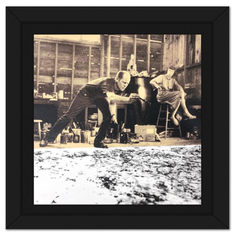 "Jackson Pollock" is a hand pulled limited edition silkscreen on canvas by Andy Warhol protege, Steve Kaufman (1960-2010), numbered PP 11/50 inverso and hand signed by the artist. This piece comes custom framed. Includes Letter of Authenticity. Measures approx. 17.5" x 17.5" (frame), 14.5" x 14.5" (image). This item requires special handling and may have a longer than usual turnaround.