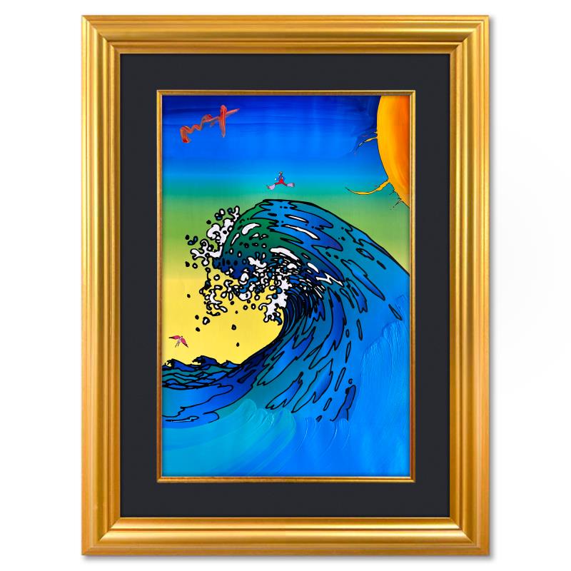 "Jingle Ball" is a one-of-a-kind mixed media on paper, hand signed by Peter Max. The piece comes custom framed with a backside cutout to display Peter Max Studio registration number 308877 certifying authenticity. Measures approximately 48" x 36" (frame), 36" x 24" (image). This item requires special handling and may have a longer than usual turnaround.