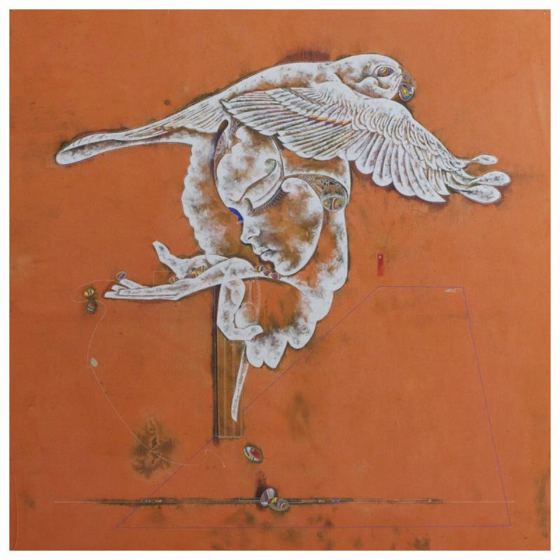 "JW vs. Ocean II (2010)" is an original mixed media painting on paper by Lu Hong. Hand signed by the artist, the piece comes with a letter of authenticity. Measures approximately 35" x 34.5".