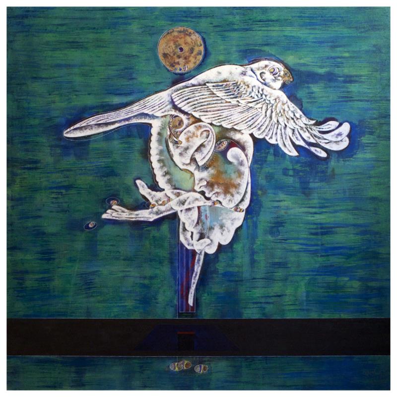 "JW vs. Ocean III (2010)" is an original mixed media painting on paper by Lu Hong. Hand signed by the artist, the piece comes with a letter of authenticity. Measures approximately 35" x 34.5".