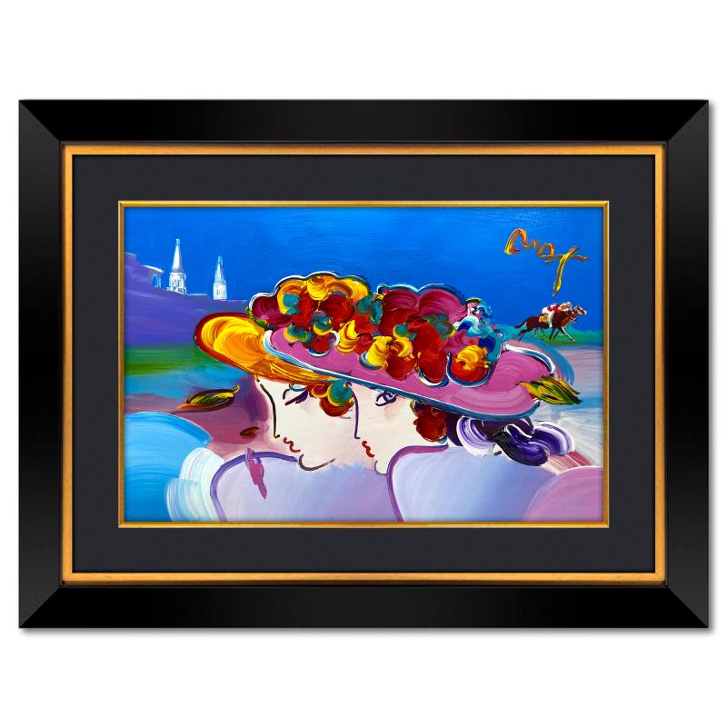 "Kentucky Oaks" is a one-of-a-kind mixed media on paper, hand signed by Peter Max. The piece comes custom framed with a backside cutout to display Peter Max Studio registration number 263104 certifying authenticity. Measures approximately 36" x 48" (frame), 24" x 36" (image). This item requires special handling and may have a longer than usual turnaround.